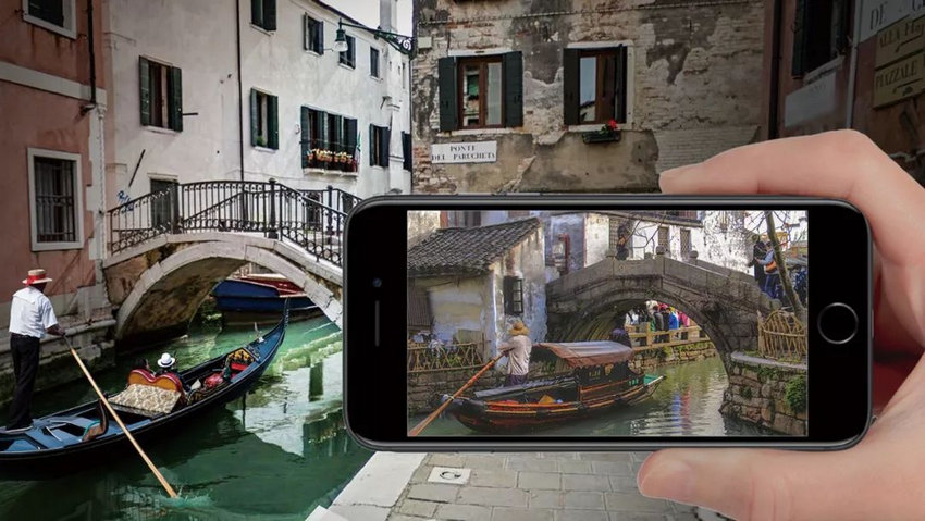 作为一个以基于地理位置的场域体验作品,《睿·寻》APP由三个板块组成,它们分别是《睿·寻》手机应用程序作品,以及《睿·建》艺术游戏和《睿·联》VR 漫游。下载了《睿·寻》APP的观众可以通过手机在威尼斯水城里搜寻并体验艺术家“移植”在当地桥梁上的来自中国的25座桥。