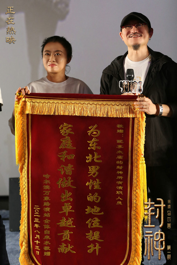 《封神第一部》哈尔滨巡回礼导演收到观众制作的锦旗