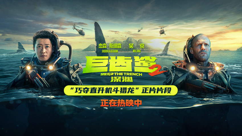 《巨齿鲨2:深渊》全球票房破2.56亿美金,曝“巧夺直升机斗猎龙”正片片段