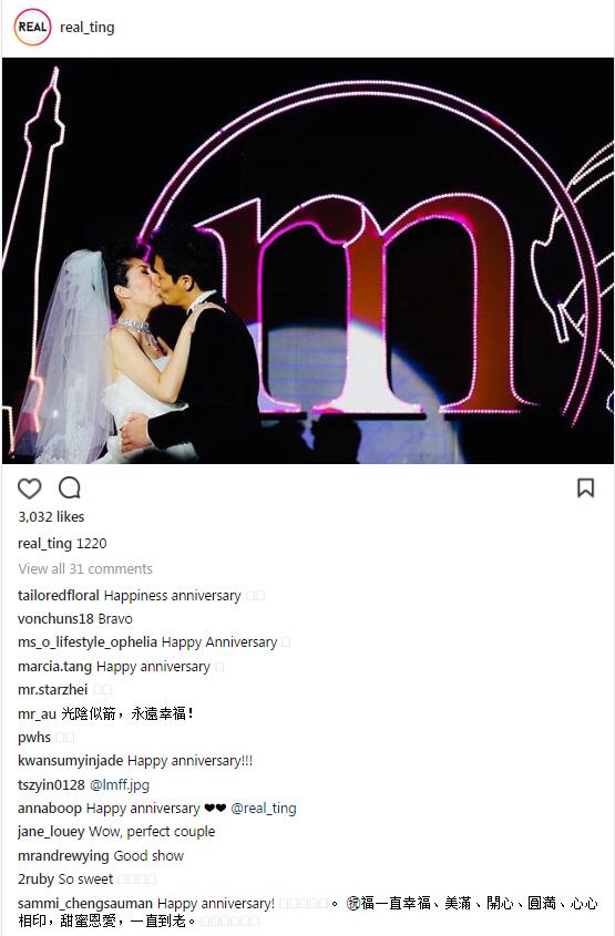 网友看到丁子高庆祝结婚纪念日,纷纷评论:“纪念日快乐”、“光阴似箭,永远幸福”、“祝福一直幸福美满,恩爱到老!”