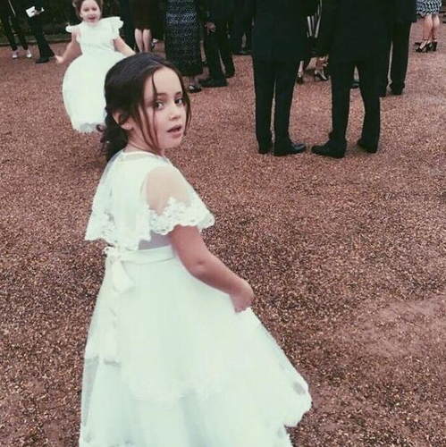 12月22日,网友晒出贝克汉姆和维多利亚的女儿小七和表姐在舅舅婚礼上当花童的照片,照片中小七穿着白色的小纱裙,开心地跳起来,十分活泼可爱。