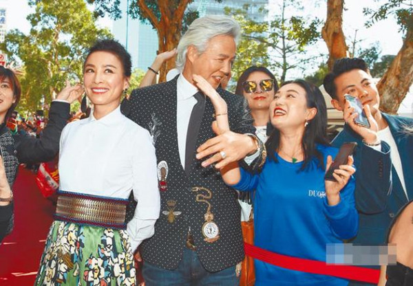 据台湾媒体报道 林瑞阳与老婆张庭名字自创TST庭秘密保养品牌23日在台旗舰店开幕,林瑞阳红光满面,身材微发福,47岁张庭依旧冻龄,夫妻走星光红毯时受大陆粉丝夹道欢呼,还有大妈直接踢掉鞋子踩上路边机车抢