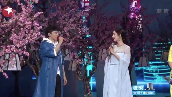值得一提的是,杨幂和张杰带来了一段大家期待已久的特别合作,带来《三生三世》主题曲。杨幂身着长裙缓缓而降,衣袖飘逸美艳动人,然而现场音响出现故障导致杨幂的诗朗诵短暂失声。