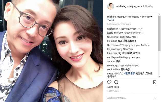 1月1日,李嘉欣和老公许晋亨合体晒照,为网友送上新年祝福。