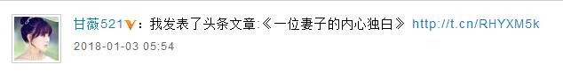 1月2日,贾跃亭妻子发微博,表示受老贾委托,自己将负责贾跃亭在国内的债务问题。晚间她再次发布长文“一位妻子的内心独白”,力挺老公。文中,甘薇回顾了贾跃亭创业过程中的种种艰辛,称“老贾阶段性创业失败,很大的问题是他有超越常人的梦想,不断地挑战自我、挑战极限,结果挑战过度。”对于“媒体把老贾妖魔化,大家都一边倒的带着有色眼镜来看待贾跃亭和乐视”也感到心痛,“现在我必须站出来,与老贾一起责任。他会负责到底,我们会负责到底。希望能够得到大家的宽容和理解!”甘薇还表示,未来会将最新的债务解决情况及时通过微博发布。