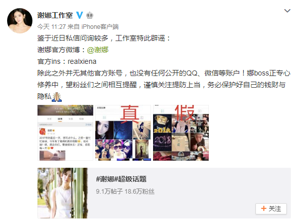 近日,网曝谢娜在ins上晒合照感恩快乐家族,并配文:“thank you for your likes,2017 goodbye。”而配图无吴昕因此引发网友热议。今日,谢娜工作室发文辟谣,称谢娜只有一个官方账号,并透露谢娜正在专心修养中。