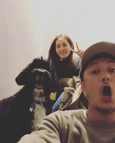 余文乐拿手机自拍,搞笑摆出O字嘴表情,镜头主角则对焦给王棠云,再加上一只狗,老婆素颜比YEAH相当甜美。他写下“他们两个送我出门”,同时老婆依旧拿着卡其色外套遮盖肚子,令人联想到6月当爸的传言,粉丝趁机留言“期待您有第三个!”