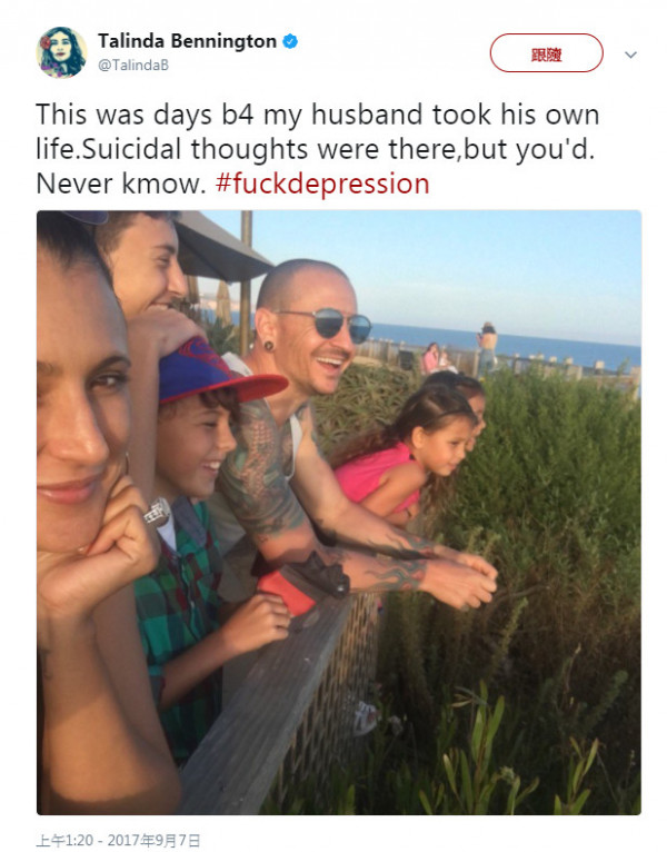 林肯公园主唱妻子晒查斯特最后笑容:Fxxx 忧郁症