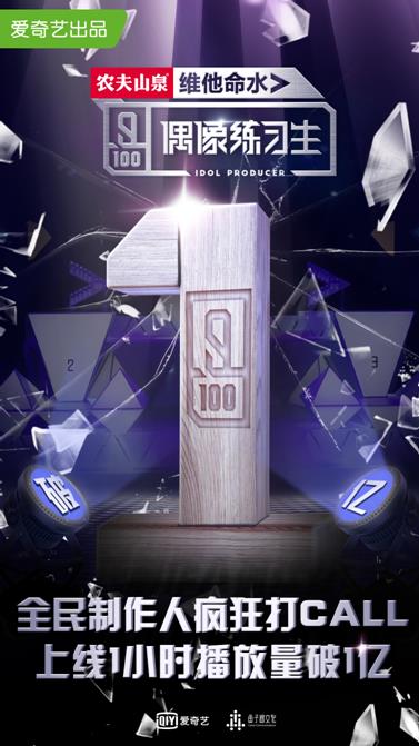 超级网综《偶像练习生》上线一小时破亿 爱奇艺打造“国民偶像”新爆点