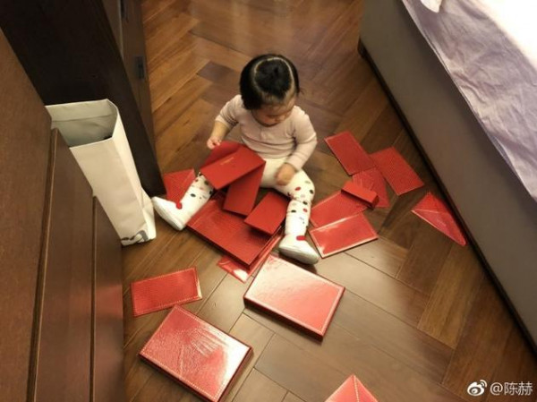 1月24日,陈赫更新微博称:“快过年了,安姐正在练习”并附图一张。照片中陈赫的女儿安安正坐在地上,面前乱七八糟凌乱地摆了一地的红包,看样子这是在提前为即将到来的新年演习。网友调