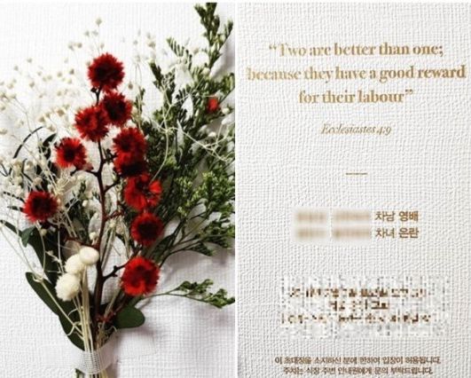 太阳闵孝琳婚礼请柬曝光 红白花点缀华丽典雅