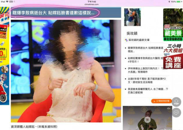 粘嫦钰失实报道后致歉资深媒体人粘嫦钰26日在网络上爆料知名作家李敖病逝,事后发现遭李敖经纪人打脸驳斥“没这个事”,紧急将文删除,并向李敖与其家属致歉。不过粘嫦钰并没有因道歉平息