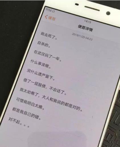 硕士毕业1年欠债自缢身亡 手机里一段话令人伤心