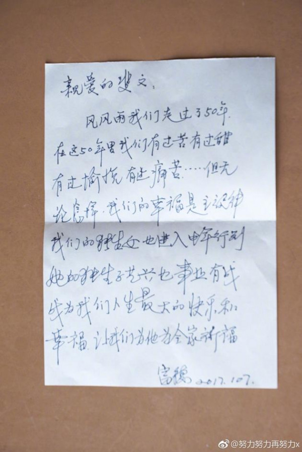 同时,他也笑称外公总不让自己询问他们年轻时的故事,“25岁那年他们遇见,在那个年代 ,书信寄托着思念,而磁带就是属于他们的浪漫……总之,后来外公向外婆求婚了,就和那个时候很多老一辈一样,没有那么多的排场,也没有五彩斑斓的梦幻场景与代表永恒的钻戒, 也许是平淡的开始,却这么扎实的走过了风风雨雨,走过了50个春秋,让我总觉得羡慕又带点遗憾,我想为他们制造浪漫。”