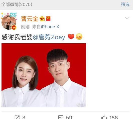 曹云金晒照宣布与唐菀领证结婚:感谢我老婆
