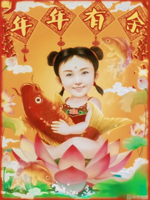 佟丽娅版“年画娃娃”今天是腊月二十三,北方俗称今天为“小年”。中午,佟丽娅晒出一张照片,庆祝小年,发文:“年年有鱼~”照片中,佟丽娅化身可爱&ldquo