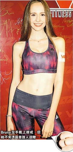 昨天Bruna穿着运动衣为健身中心开幕礼担任嘉宾,跟教练示范简单健身动作,尽显S曲线身材。热爱运动的她隔空大赞绯闻男友:“William是完美!他身形够健硕、坚挺和性感!”她最欣赏对方身上6块腹肌,觉得是最性感部位!Bruna表示每星期独自做5天运动,希望有机会向身形非常棒的陈伟霆偷师。
