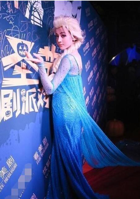 近日,有网友在微博曝光一组迪丽热巴早前扮演冰雪女王的照片。照片中,迪丽热巴身穿《冰雪奇缘》中艾莎女王同款蓝色裙装,戴着白色假发造型略夸张。