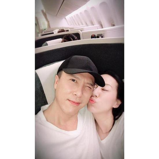 甄子丹携妻出游 汪诗诗晒恩爱亲吻合影
