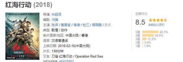 电影《红海行动》目前正在热映中,这种军事题材的电影是第一次在贺岁档电影中出现,不过这种题材的电影期待值还是很高的。上映首日,在排片逆势的情况下,《红海行动》凭炸裂口碑获观众青睐,首日票房破亿!截止大年
