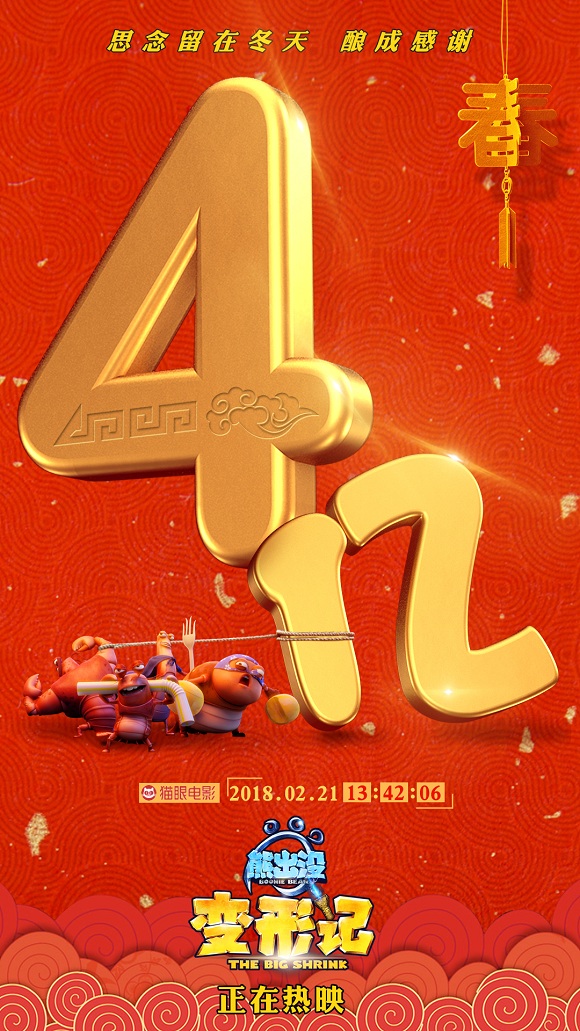 《熊出没 变形记》破4亿 上座率稳居日间第一
