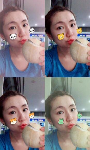 7日,Selina更新微博称转机的巧遇,小椰子圆圆爱你,冬天变夏天。照片中Selina素颜手拿椰子对着镜头再加上卡通贴纸的装扮,样子十分可爱。