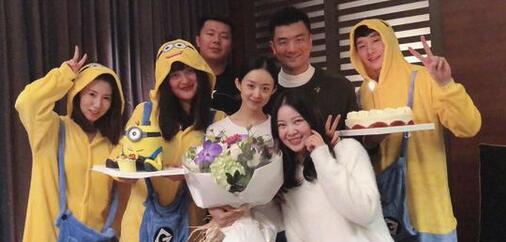 6日,赵丽颖工作人员微博晒出团队给经纪人黄斌过生日的照片,合影中,素颜的赵丽颖十分抢镜。