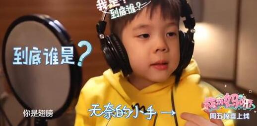 影片中,只见杜江细心为儿子戴上耳机,然后一字一句教唱,而嗯哼也非常乖巧地跟着重复,只不过因年纪尚小,依旧无法摆脱平时的说话习惯,忍不住在句子的一开始,加上“我”字,尤其是唱到“你是翅膀,我是精灵”这句歌词,你、我傻傻分不清楚,让杜江非常头痛,甚至一度无奈深呼吸,似乎快要崩溃了,但最后还是耐心地换了各种方式教导,最后终于让他学会。