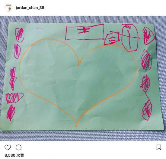 陈小春晒儿子Jasper画作 大大的爱心超惹眼