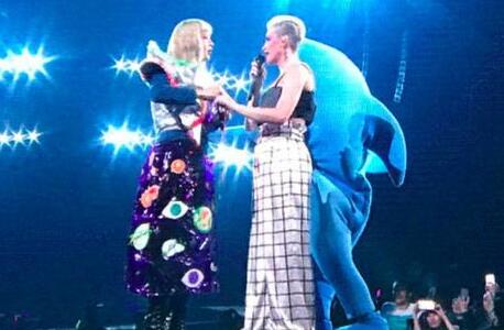 凯蒂佩里二度访台开唱,为了与歌迷近距离互动,她亲切询问“可以教我讲中文吗?”期间,她看见一名穿着华丽、留着金色长发的粉丝,主动邀请对方上台,男粉教她讲“我爱你”、“可爱”、“我喜欢待在台北”,为了向歌迷表达谢意,她热情到当场倒立,让全场掀起尖叫声。