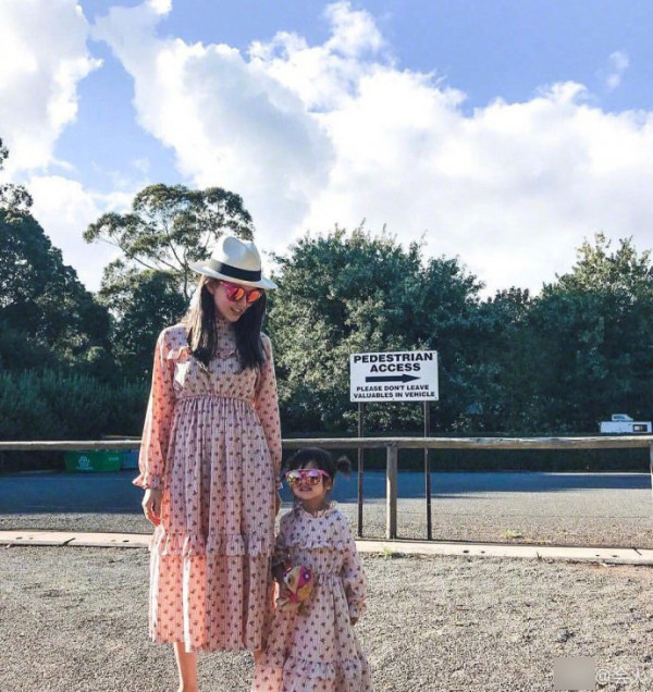 4月9日,周杰伦爱妻昆凌在社交网站上晒出和女儿海瑟薇的合影。两个人穿着母女装,小周周也罕见露出了正面。照片中,昆凌和小周周两个人穿着粉色印花连衣裙,还戴着墨镜,母女装十分搭。昆凌低头幸福的看着女儿,小