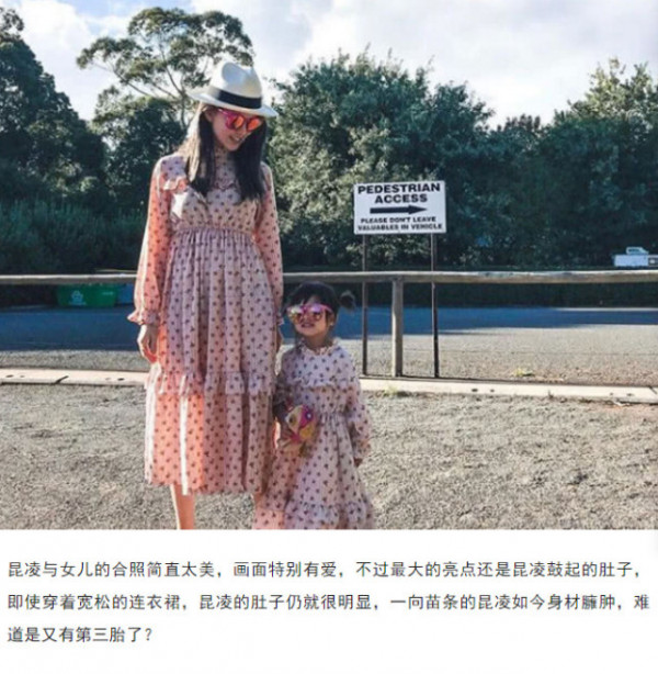 今日,网曝昆凌与女儿的合照,画面中二人都穿着宽松的连衣裙,戴着粉红墨镜,特别有爱。不过不少人注意到昆凌小腹微隆,怀疑再度有喜。腾讯《一线》记者联系周杰伦所属经纪公司工作人员,对方表示“这个