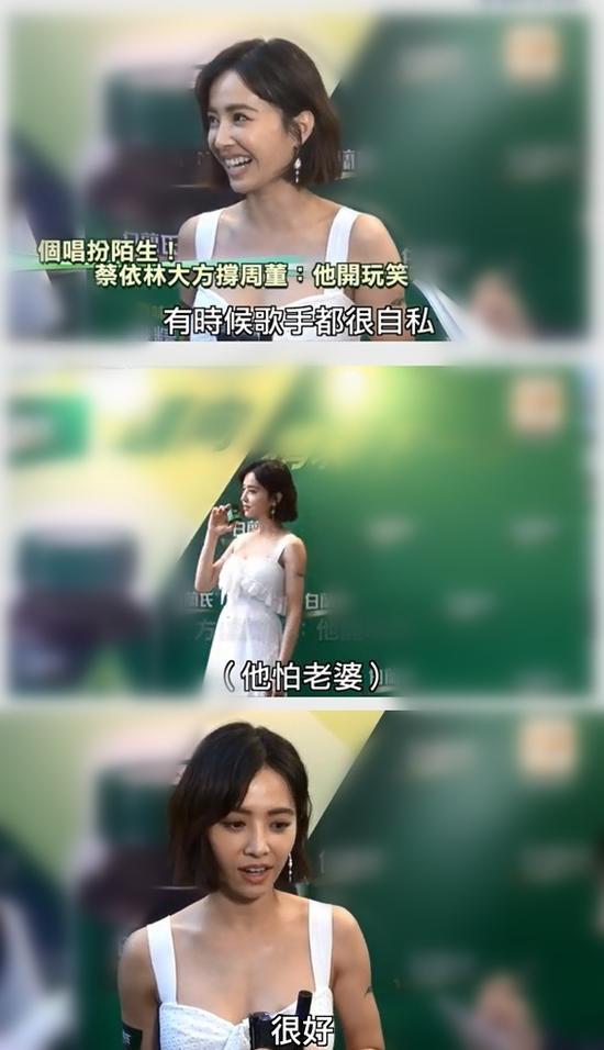 周杰伦3月21日在香港举办演唱会,点歌环节有个粉丝想点蔡依林的歌,当时台下就坐着老婆昆凌,让他听了说:“蔡依林是谁?”接着还演唱《你怎么连话都说不清楚》,情况十分搞笑。而蔡依林10日出席香港活动时,也被问到会不会不开心,她大方笑说:“不会啊,一定是开玩笑的。”紧接着媒体又说周董是怕老婆,她频点头连讲4次“很好”。