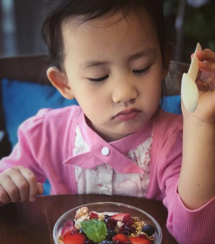 4月11日晚,孙莉更新微博晒小女儿多妹的可爱照,并称:“这是什么表情 ?”照片中,多妹斜视着桌上的一碗水果,手拿勺子,嘟着可爱的小嘴巴,无情的嫌弃,十分的可爱。此微博曝光后,逗乐网友,纷纷围观并留言称:“‘全是素食没有肉肉不开心’的表情。”“一脸嫌弃,心里想要是冰激凌该多好呀。”“怎么可以这么可爱!”