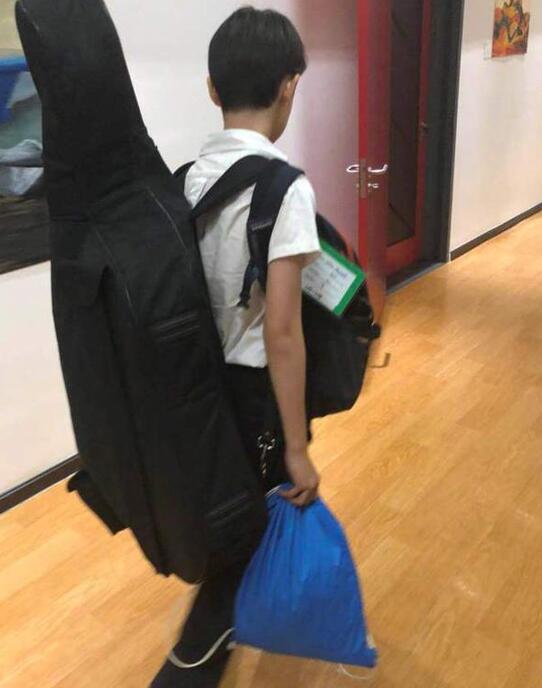 海清儿子背影4月12日,海清在微博上晒出儿子背影照,并配文称:“我真得觉得孩子上学挺不容易的,今天蛋妞还没有带游泳包和运动包,最多的时候一个大提琴四个包,怎么拿呀。。。”并称自