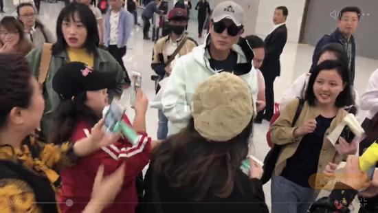 杜江现身重庆机场遭粉丝围堵 态度亲和与粉丝热聊