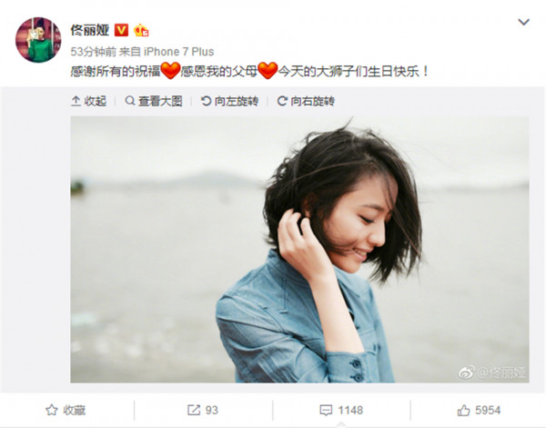 佟丽娅凌晨发博感谢大家的生日祝福