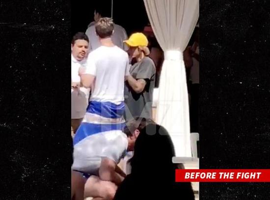 据消息,4月14日星期六,比伯和几个朋友正在派对上玩闹,一名男子走进来,认出某位女宾客后“炸了毛”,一把掐住她的脖子,两人似乎是前男女朋友关系。比伯和朋友连声高喊要他松手,他不但不听,还向他们爆粗口。比伯情急之下一拳打在他的脸上,把他按在墙上,强迫他住手。