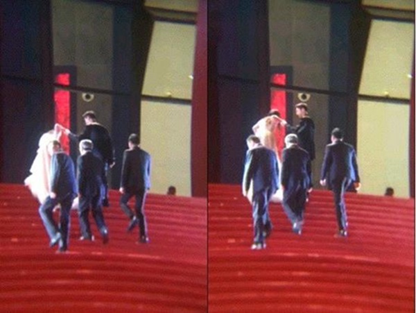 由陈伟霆与林允主演的电影《战神纪》被选为“北京国际电影节”的闭幕片之一,两人受邀一起亮相红毯,只见他身穿一袭黑色西装,搭配黑色T恤,时髦且不失庄重,而一旁的林允则是一袭米色长礼服,胸部以上为透视设计,仅用亮钻点缀,看起来非常漂亮。但是因林允的下半身纱裙太长、行动不便,两人在走上楼梯时,林允一度误踩长裙差点摔到,他也非常快速地一把拉起对方,期间他也紧紧牵着对方,还不时停下脚步,帮林允整理裙襬,还不时帮忙注意台阶。