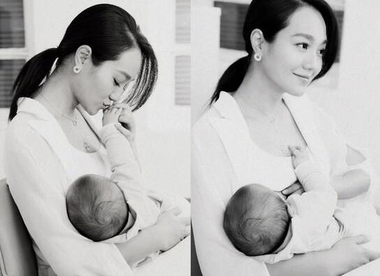 照片中,朱丹将头发随意扎在脑后,怀里抱女儿,亲吻女儿的小手,幸福满足写在脸上,另一张,朱丹正在给女儿喂奶,一脸的平静祥和,画面非常的温暖。