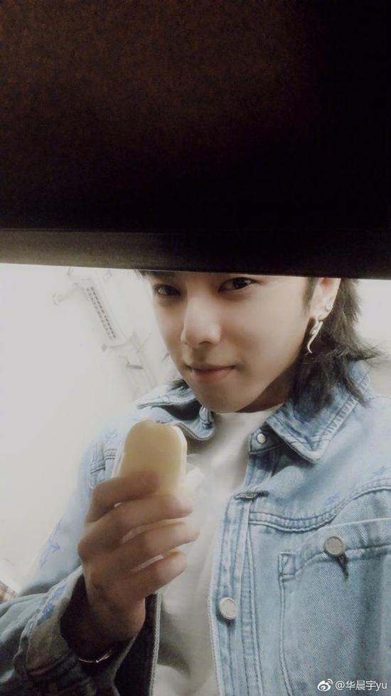 4月27日,华晨宇晒出一张自拍,并发文称:“偷吃一小口。”照片中,华晨宇身穿牛仔外套,内搭白色T恤,耳戴银色耳环,手举零食;挡住额头,笑眼弯弯,嘴角微微上挑,看起来十分帅气。