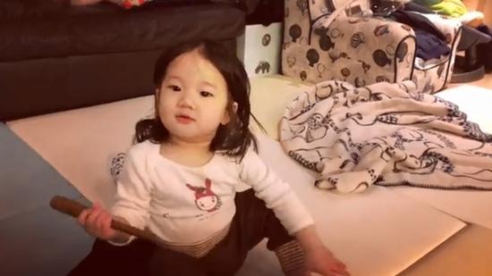 Lucy现在一岁多,听到隋棠呼唤“妹妹!你说马麻”,开口却变成叫“把拔。”她认真敲着木头玩具,每次要回应,张嘴还是喊成“啊!拔拔!”结果直到最后一秒都没喊对,把妈咪逗得笑声不断,自己也忍不住露出微笑。