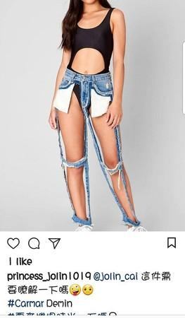 某品牌日前推出超破格的时尚破裤,从示意图可以发现女模特儿穿著类似泳衣造形的黑色内搭,裤子前方则是只有膝盖和最底部有留一小环的布,转到背面更是狂,只有最底的布,其他就是全都露。看到如此前卫的时尚单品,粉丝当然第一个就想到蔡依林,马上就狂艾特要她来看。