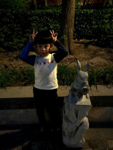 同时,沙溢还问粉丝:“冷吗?”看来是讲了一个冷笑话,来回应粉丝对安吉的爱。沙溢po了一张安吉的照片回馈粉丝,照片中的安吉双手比V字放在头上,原来是在模仿旁边的兔子雕像。他一脸认真的样子十分可爱。