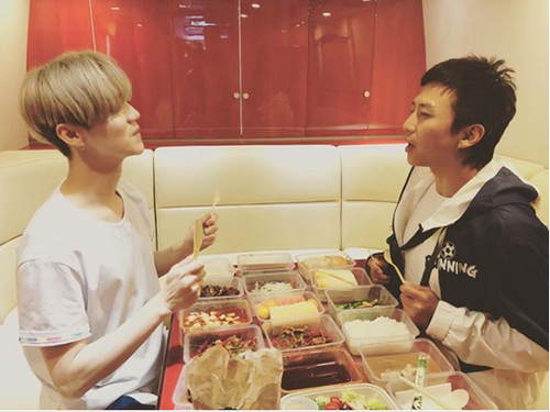 近日,鹿晗在社交平台上上传一张与邓超的合影。照片中,鹿晗身穿白色T恤,发色吸睛。坐在鹿晗对面的邓超则身穿印有“running”字样的外套,受伤的手臂尚未痊愈。鹿晗与邓超面前摆满美食,当真是“父子”情深,享受美食也不忘对方!
