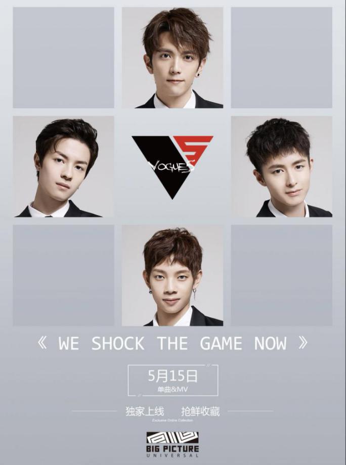 5月15日,国内青春偶像乐队VOGUE 5的首支单曲《we shock the game now》于QQ音乐、酷狗音乐、酷我音乐等平台上线。《we shock the game now》由乐队成员J.PWen作词、J.PWen与斑马共同作曲,在歌曲中,VOGUE 5展现出热情活力、青春无限的向上精神,用热血拼搏的努力诠释“青春就要疯”的当下年轻人的态度。
