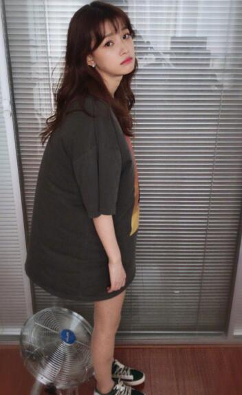 5月16日,孙怡上传照片,配文称:“热到膨胀!”照片里,孙怡身穿深灰色印花宽松T恤裙,脚踩黑色运动鞋,披散棕色长卷发,一脸无辜看向镜头。而地板上放着一个电扇,自下而上将她的衣服吹得鼓起来,怪不得是“膨胀”呢。