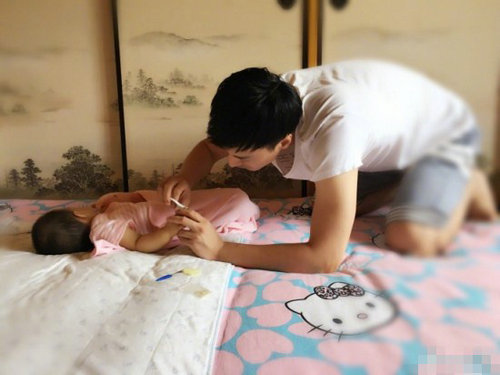 日前,陶昕然发布微博,晒出老公何建泽给女儿“小何陶”剪指甲的图片,照片中,陶昕然女儿乖乖的躺在床上,老公何建泽爬在床上温柔的给“小何陶”轻轻剪指甲,父爱