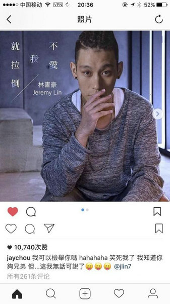 林书豪帮忙宣传新歌 周杰伦:能检举你吗