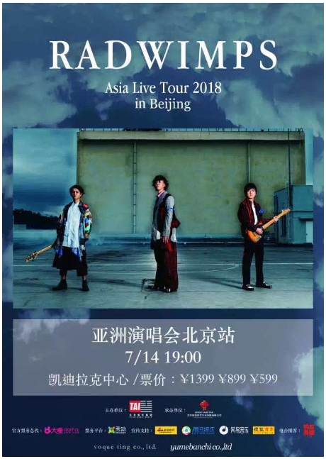 日本流行摇滚乐队、动画电影《你的名字。》原声音乐制作者RADWIMPS Asia Live Tour 2018 亚洲演唱会北京站定于2018年7月14日北京凯迪拉克中心举行。据悉,北京站演唱会由太合音乐集团主办,将于5月21日下午3点在大麦网火爆开启预售!